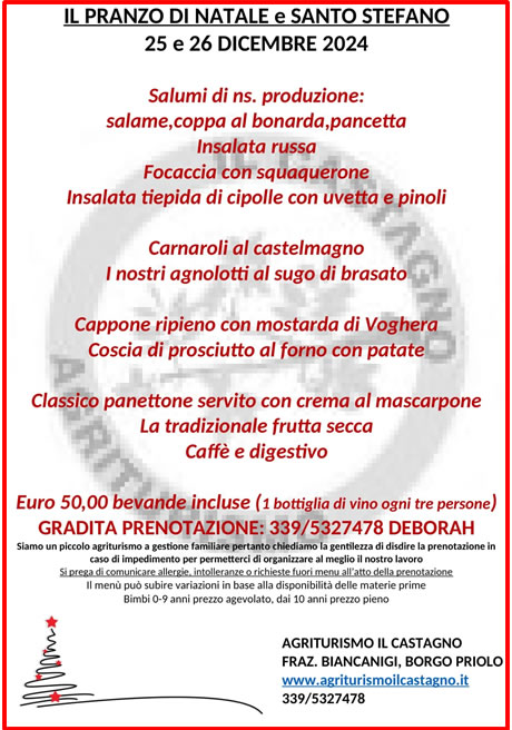 IL PRANZO DEL SANTO NATALE E SANTO STEFANO2024